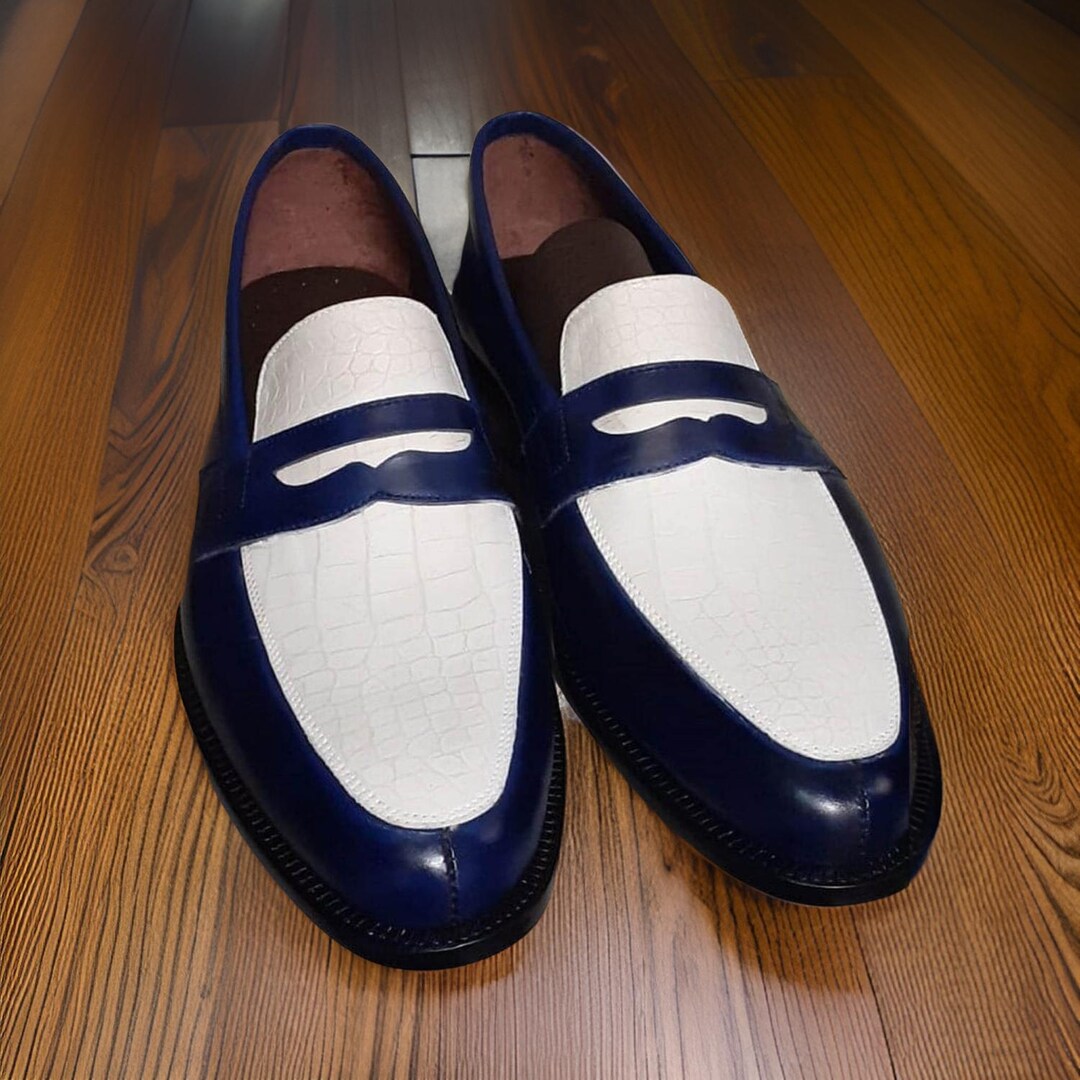 Bespoke Handmade Men's Double Tone Blue & White Color Split Toe With ...