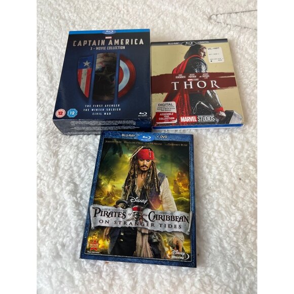 Other | Lot 3 Dvds Captain America 3 Movie Blue Ray Set Thor Pirates Of ...