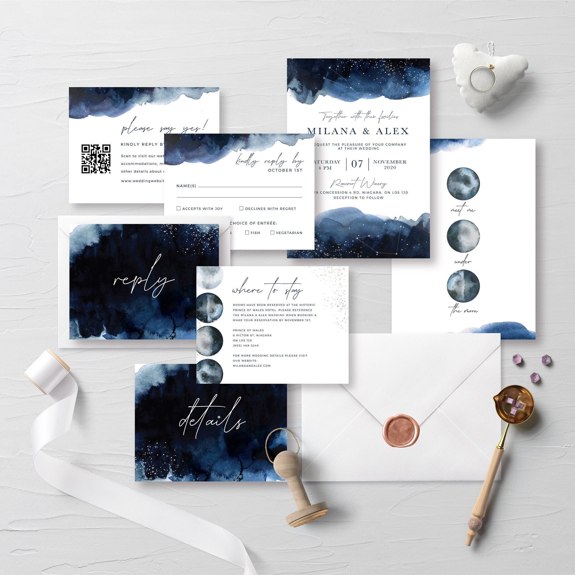 Celestial Invitation Suite, Blue Watercolor Invitation, Starry Night ...