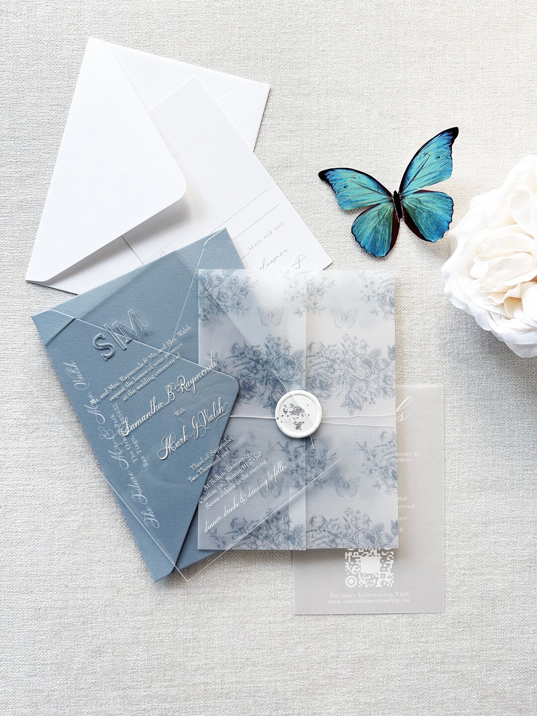 Light Blue Wedding Invitation Suite, Minimal Invitation Bundle Qr Code ...