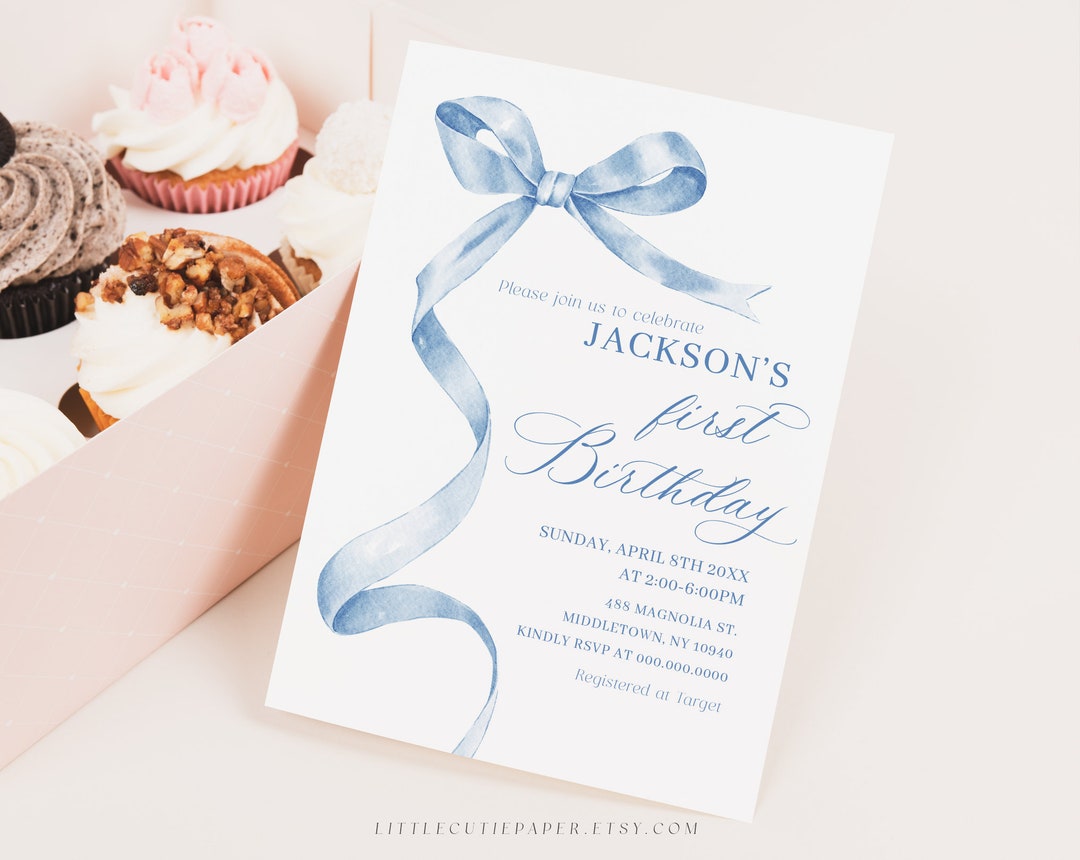 Editable Blue Bow Invitation for Birthday, Blue Birthday Invitation ...