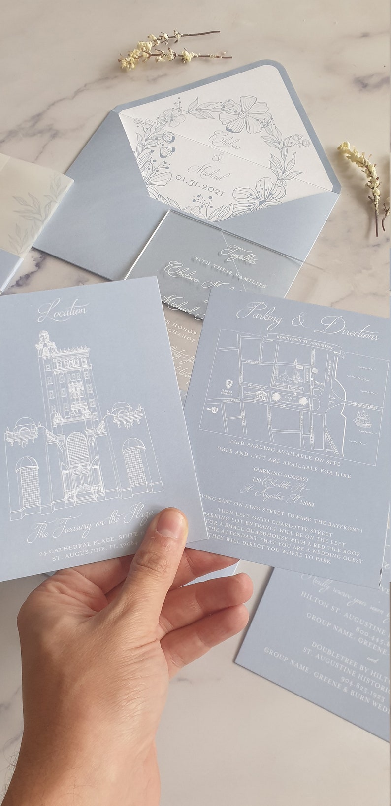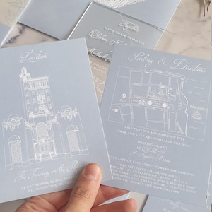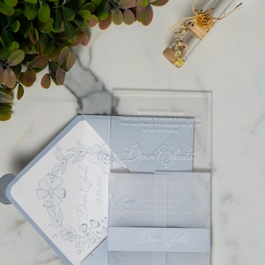 Blue Acrylic Wedding Invitation Set With RSVP, Custom Plexiglass ...