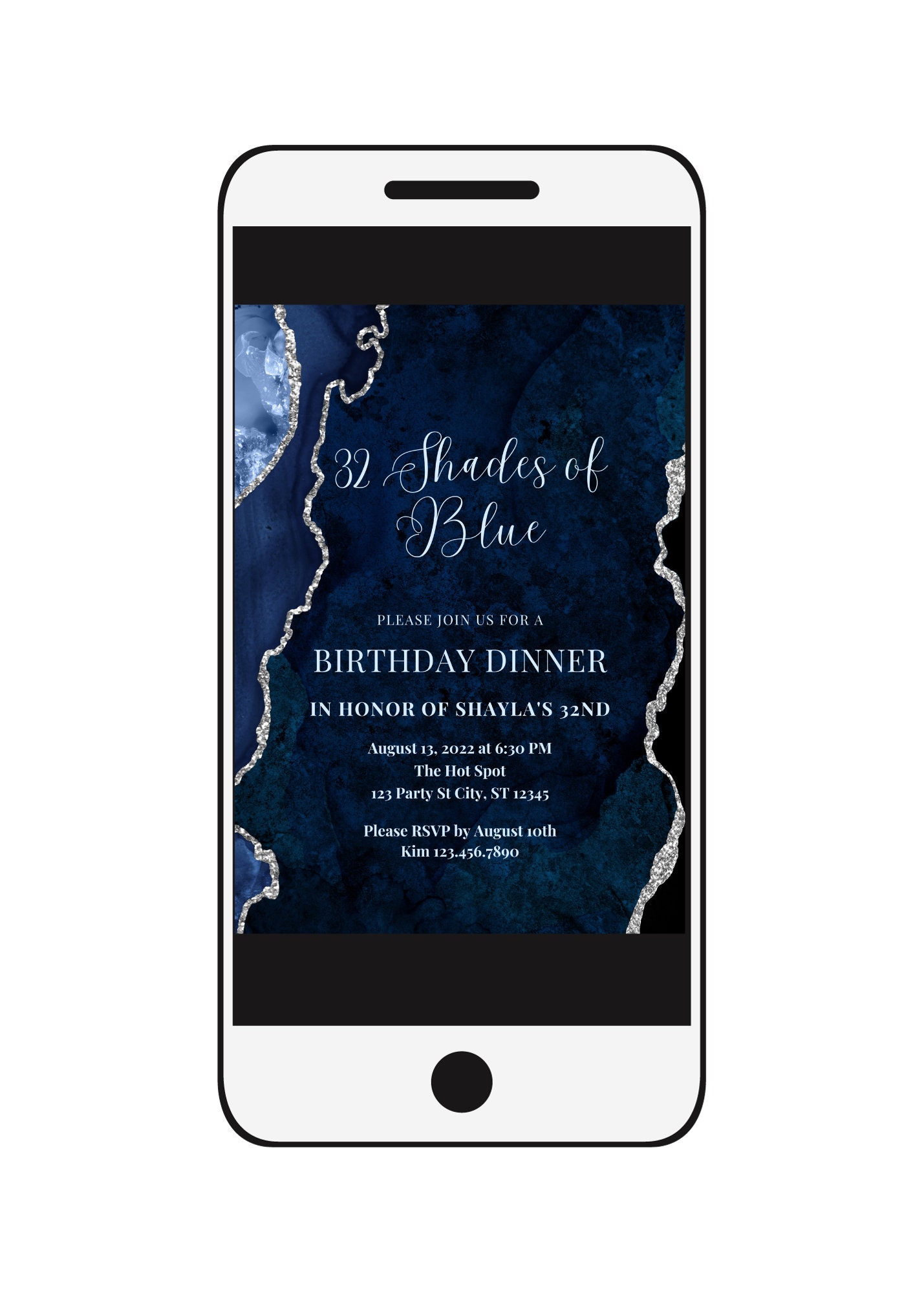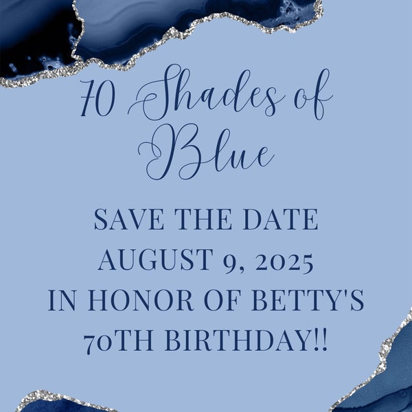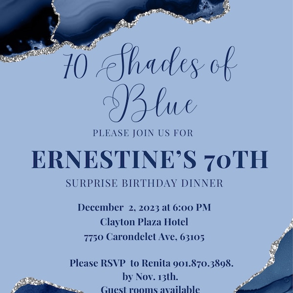 Editable Shades of Blue Invitation, Blue and Silver, Birthday Dinner ...