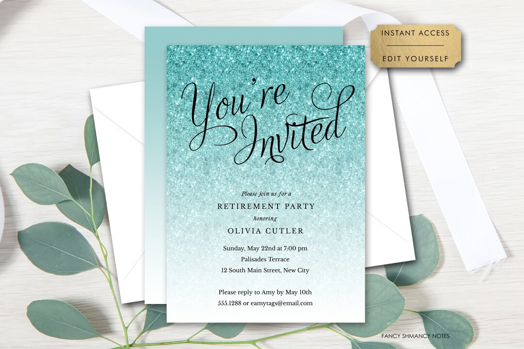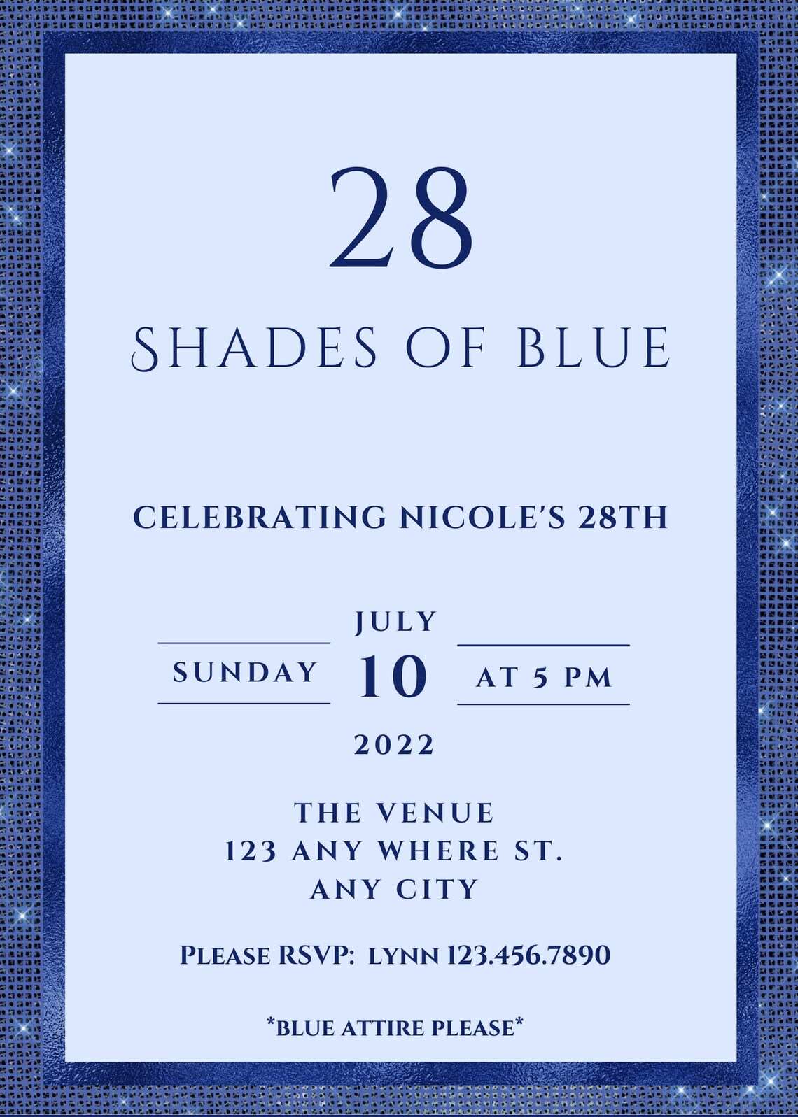 Blue Glitter Invitation Template for Any Event, Self-edit, You're ...