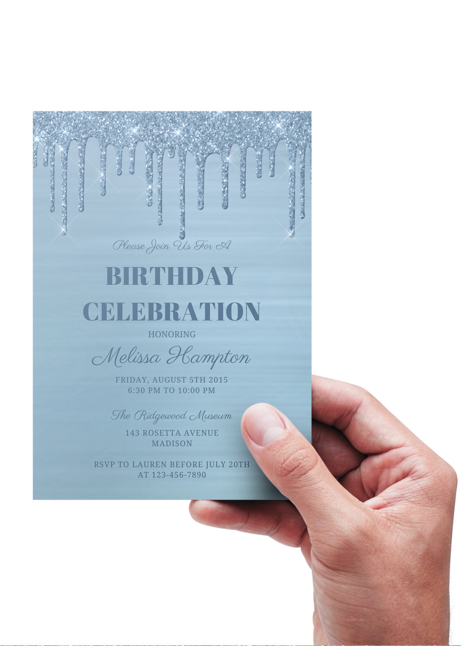 Editable Light Blue Birthday Invitation, Blue Glitter Drip, Printable ...