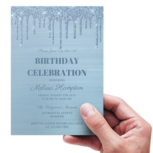 Editable Light Blue Birthday Invitation Blue Glitter Drip - Etsy