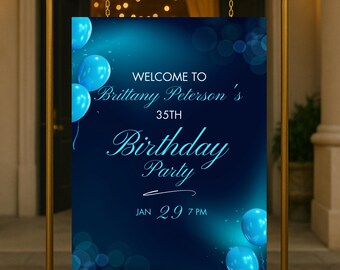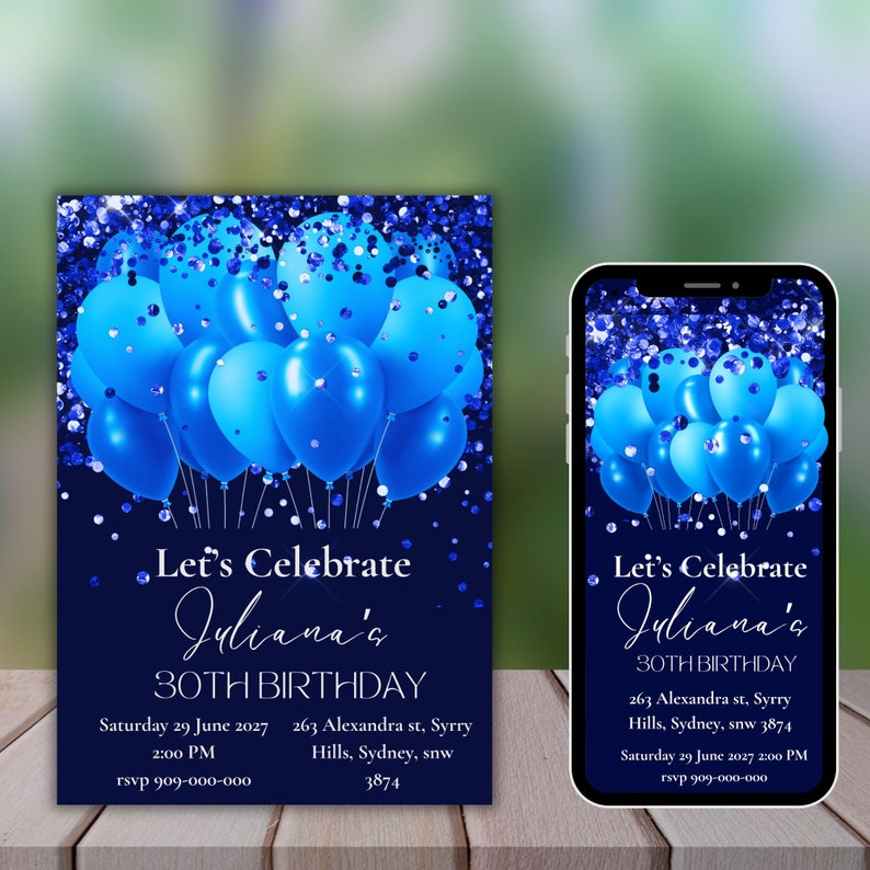 Royal Blue Birthday Invitation Template, Glitter Balloons (printable ...