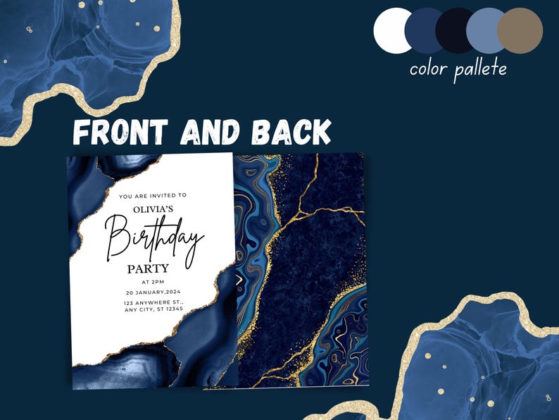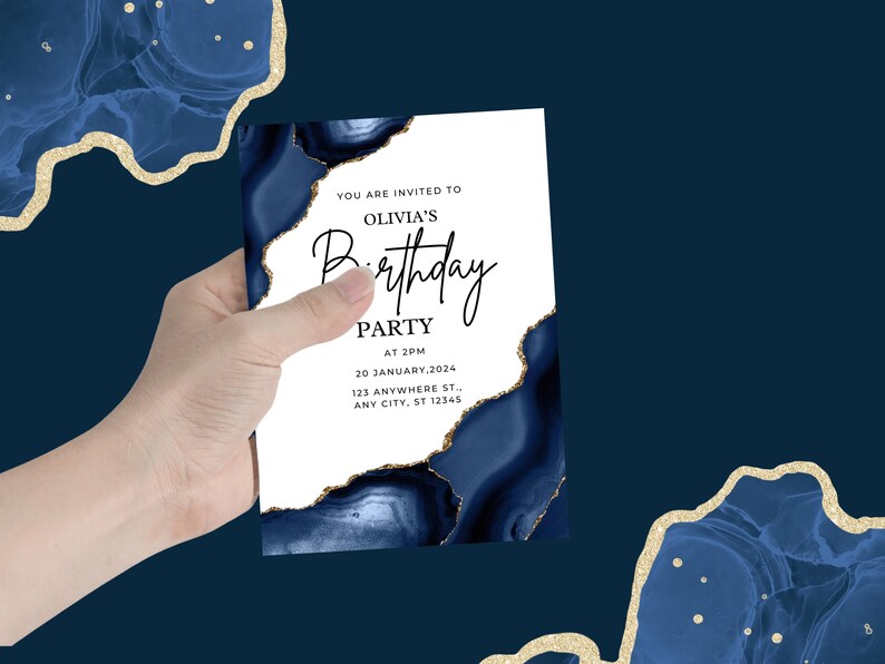 Navy Blue Birthday Party Invitation Template Editable Blue Birthday ...