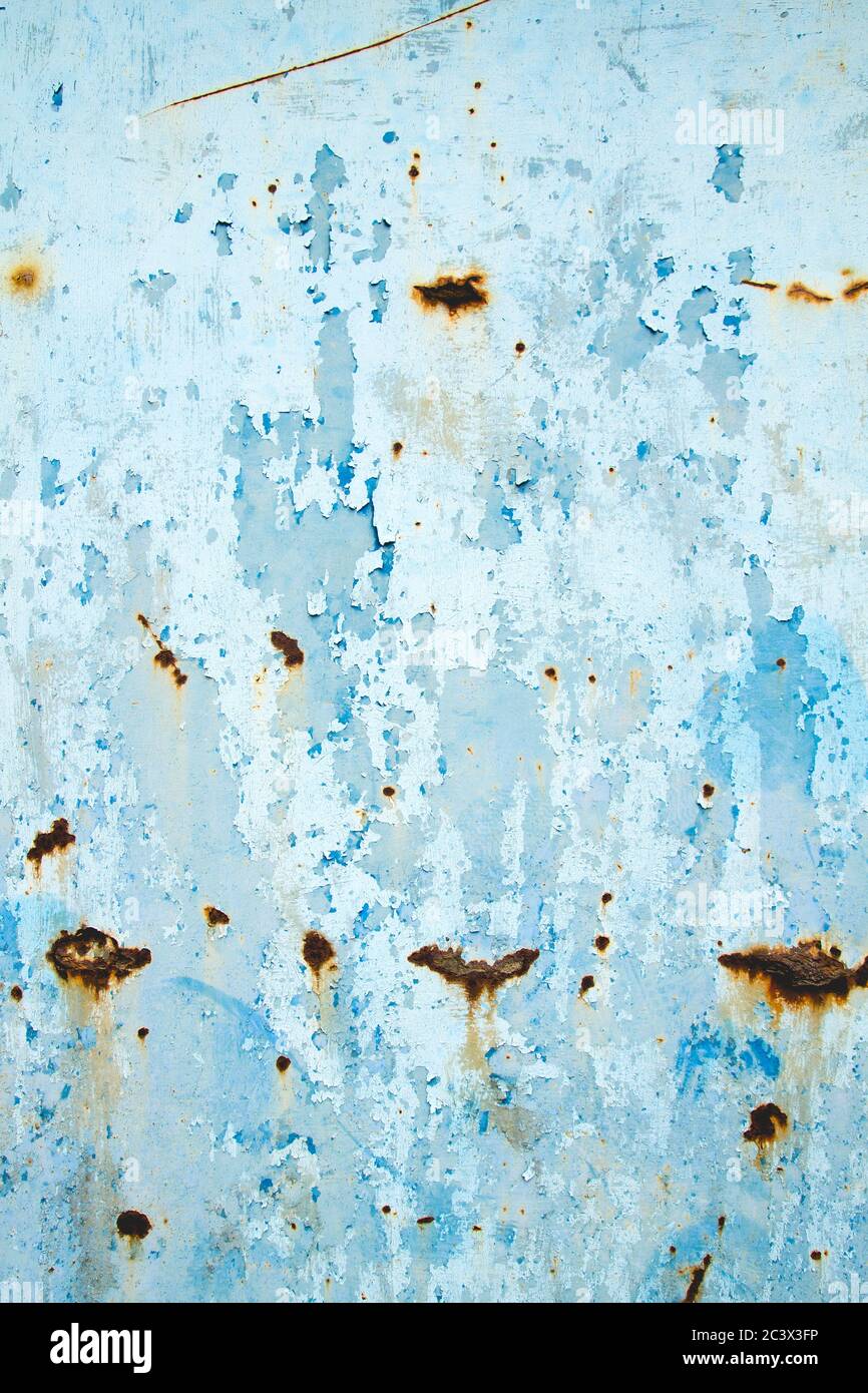Rusted blue painted metal wall. Rusty metal background with streaks of ...