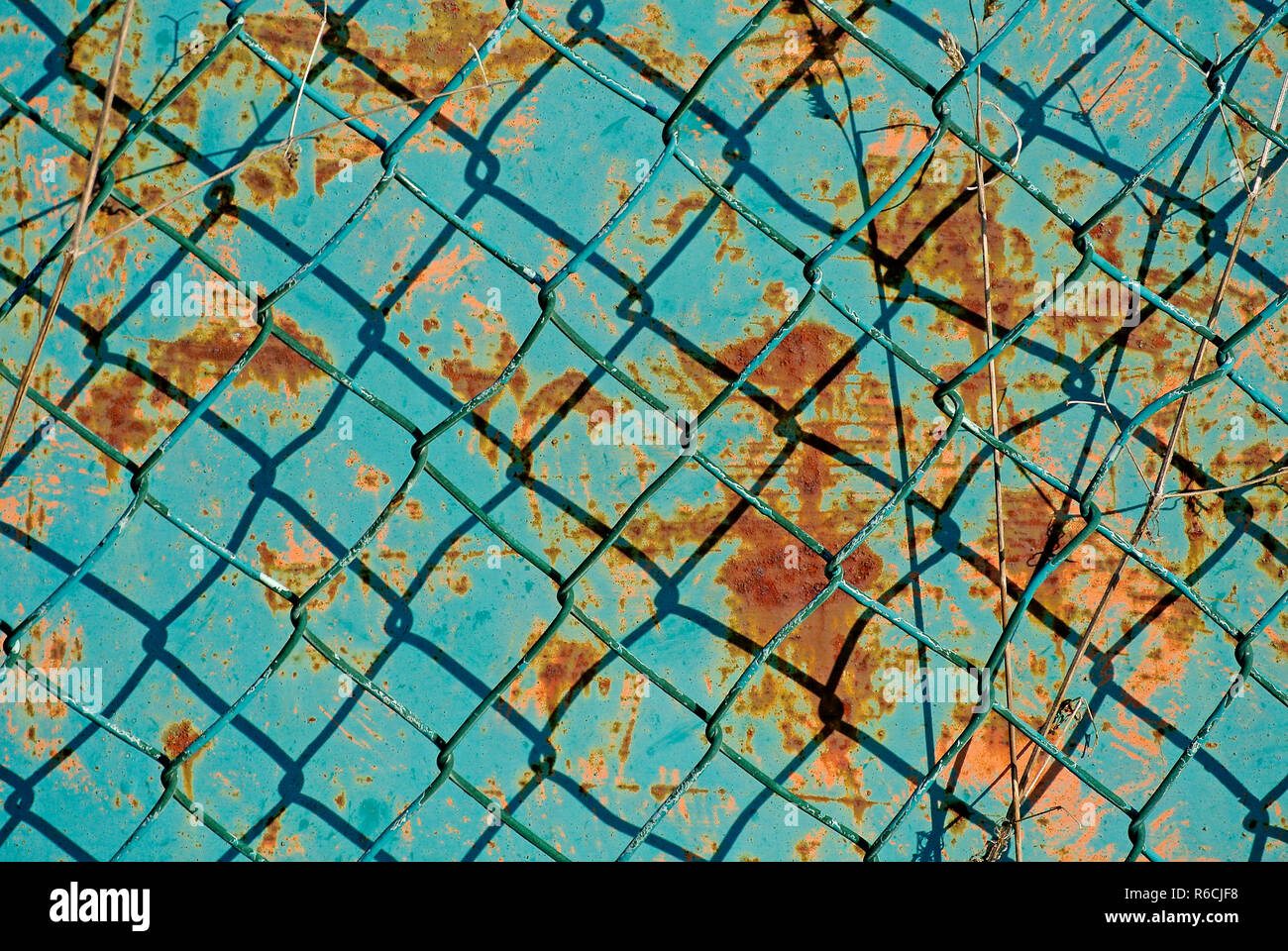 Fence With Blue, Rusty Background Stock Photo - Alamy