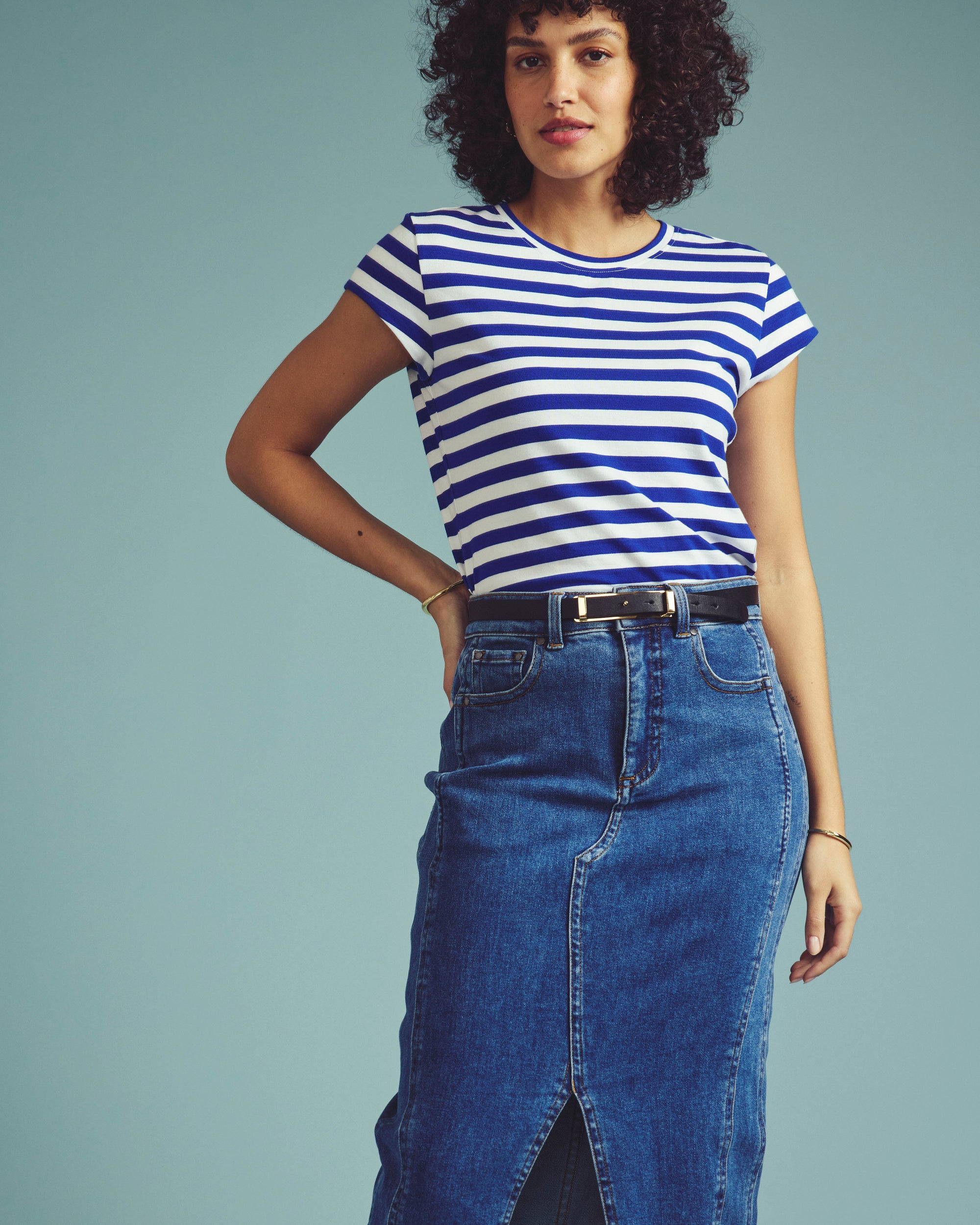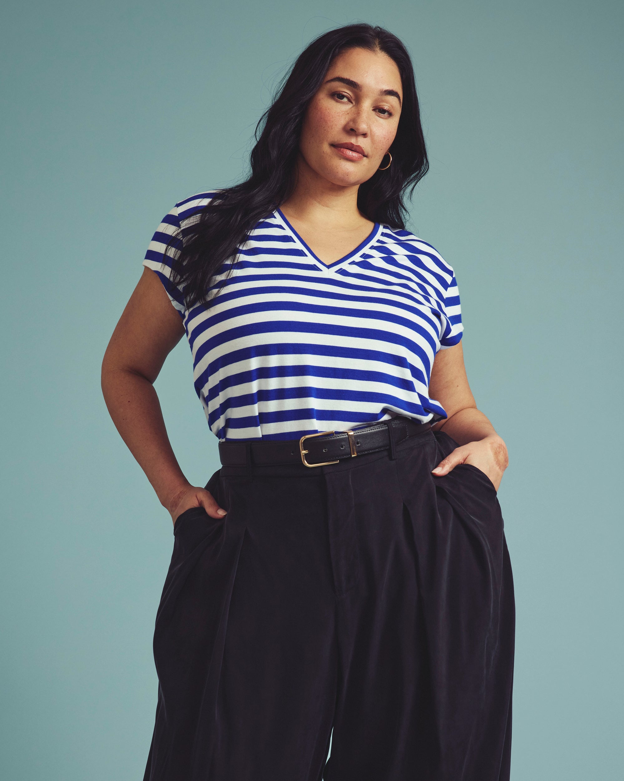 Ashley Cap Sleeve Tee - Hammersmith Blue/White Stripe – Universal Standard