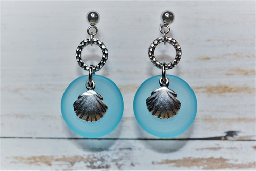 Blue Clam Shell Disc Earring