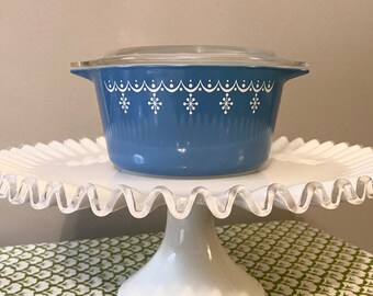 Vintage Pyrex Snowflake Blue Covered Casserole Dish | Etsy | Pyrex ...