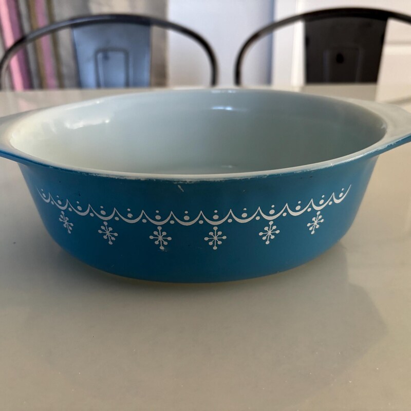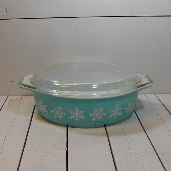 Vintage Pyrex Snowflake Casserole Dish With Lid, Turquoise Pyrex ...