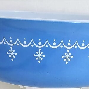 Vintage Pyrex Blue Snowflake Garland Casserole Dish White Oven Ware ...