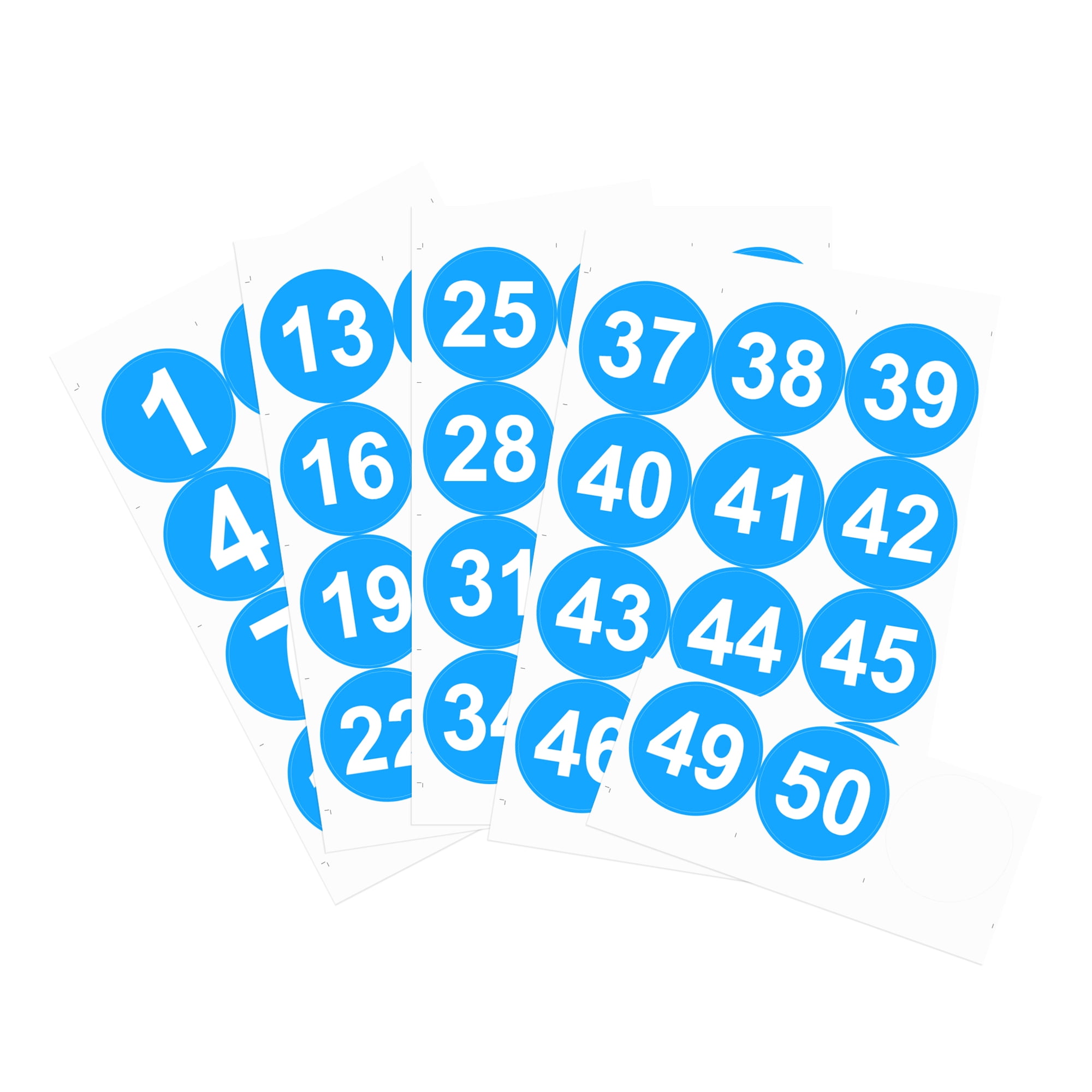 Uxcell 100mm Dia PVC Round Number Stickers Number 1-50 Blue - Walmart.com