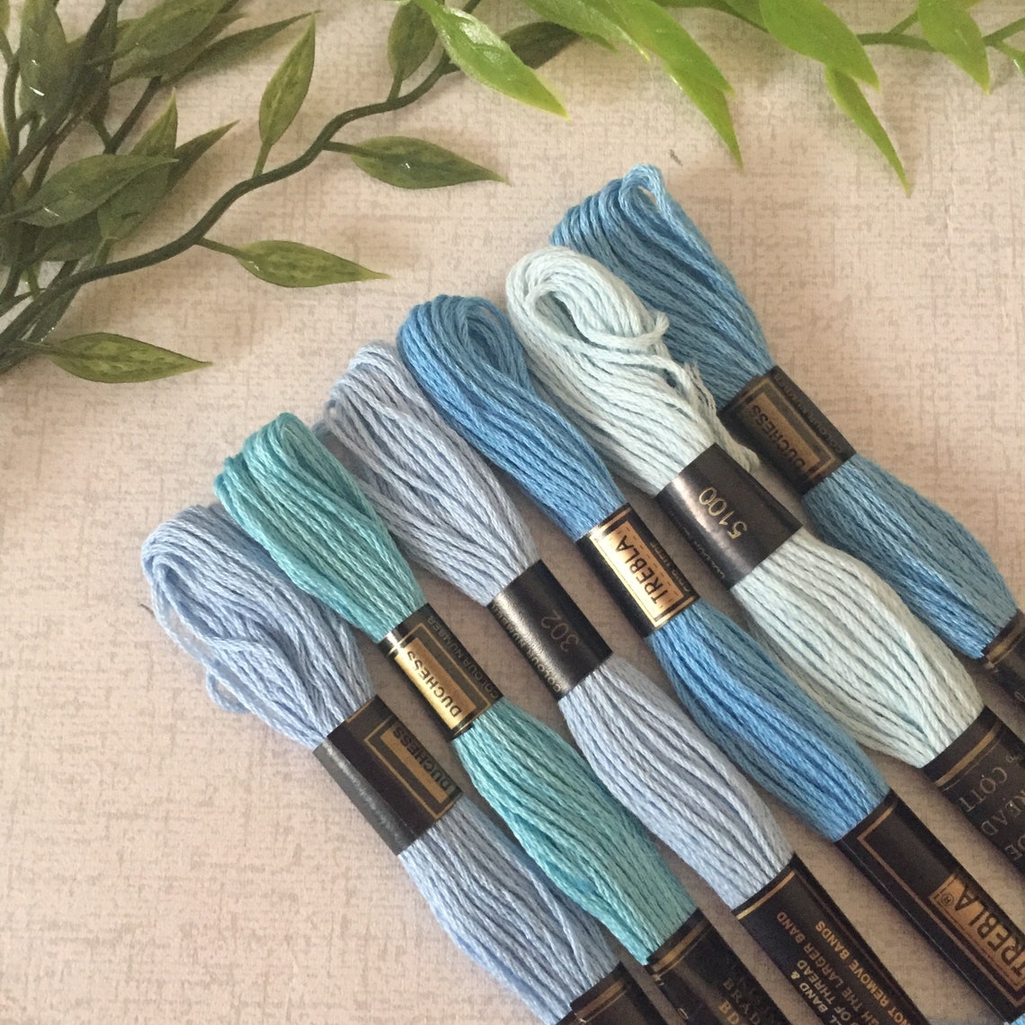 Six Blue Embroidery Threads, Pack of 6 Shades of Blue, Cotton Thread ...