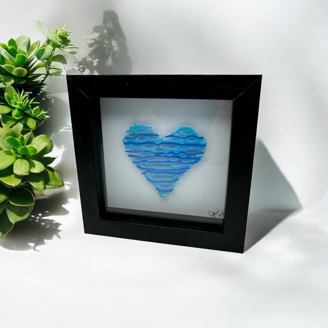 Framed Fused Glass Heart - Blue Stringers - Etsy