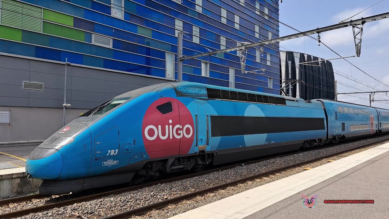 Blue double TGV Ouigo (SNCF) arriving and LIO departing - High Speed ...