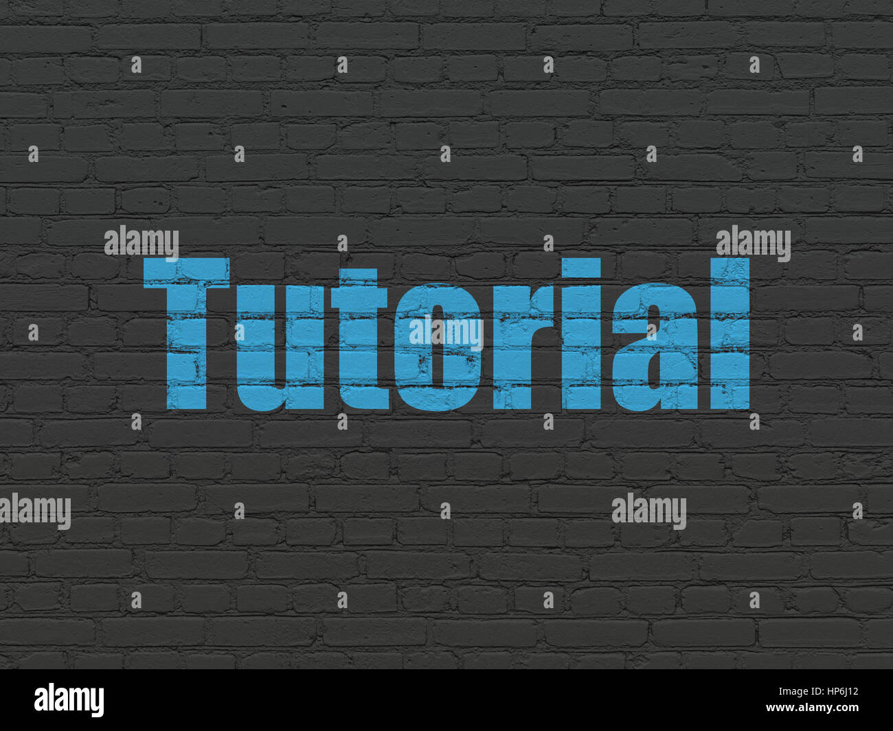 Learning concept: Painted blue text Tutorial on Black Brick wall ...