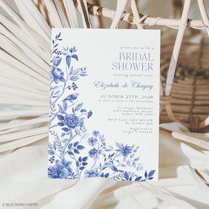 Blue Porcelain Bridal Shower Invitation Template, Delft Blue Floral ...