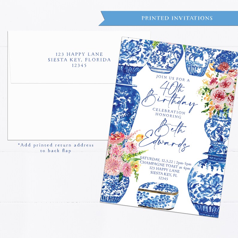 Blue Chinoiserie Invitations, Floral, Birthday, Bridal Shower ...