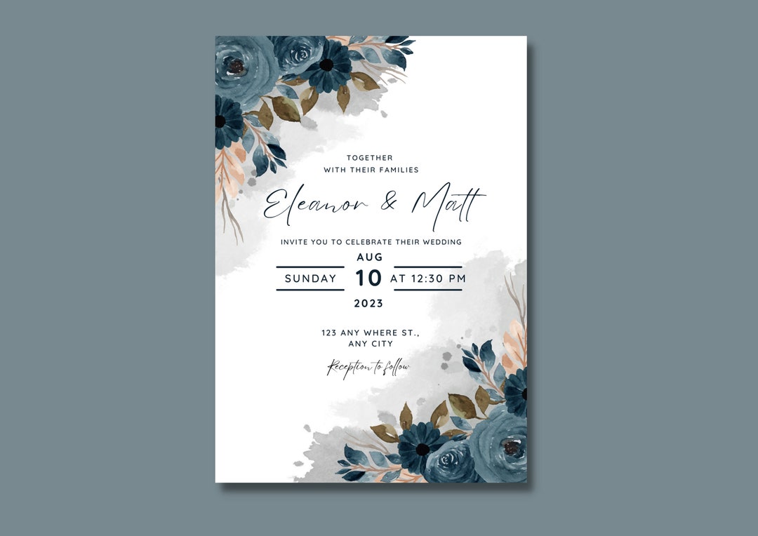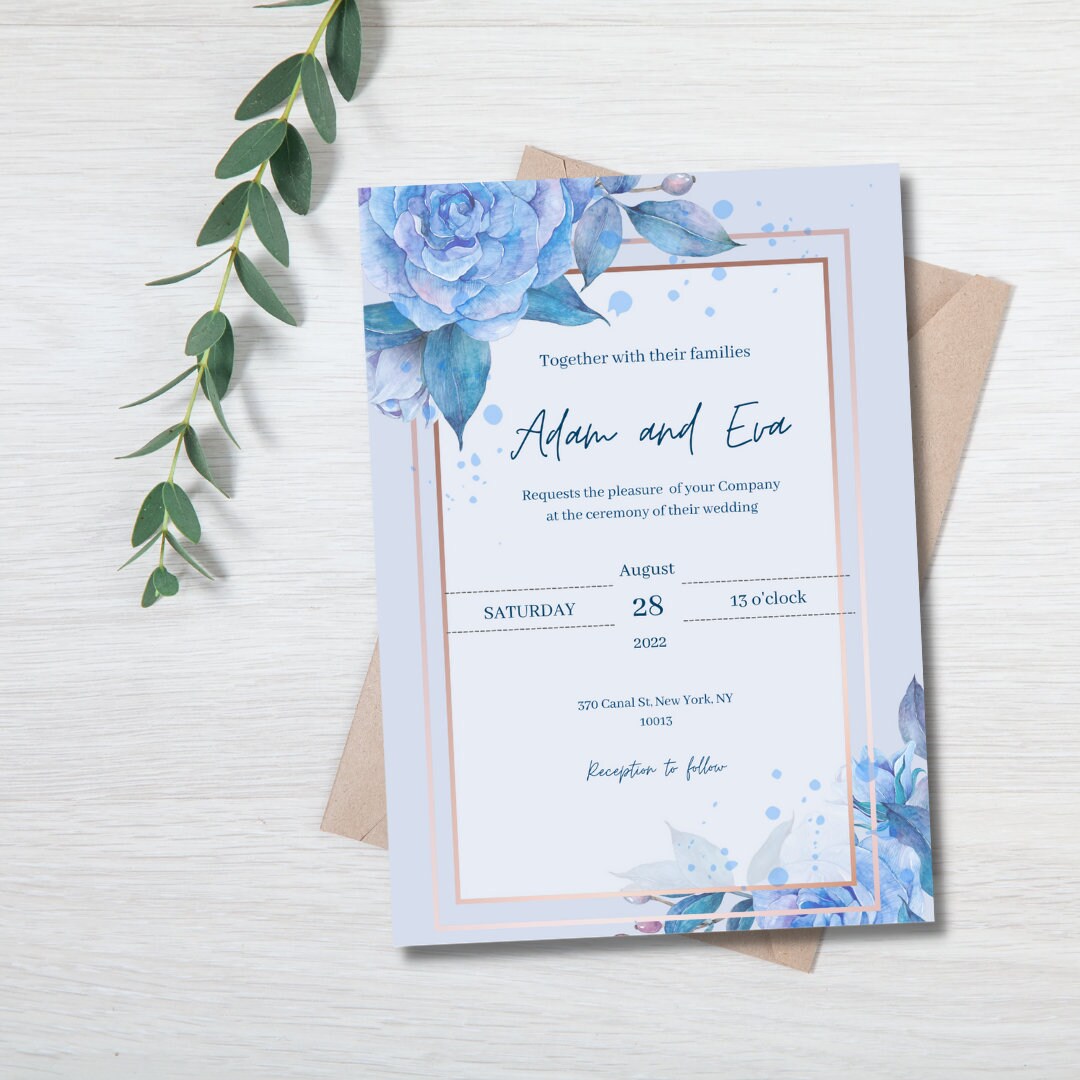 Blue Wedding Invite With Watercolor Blue Flowers, Elegant, Classy ...