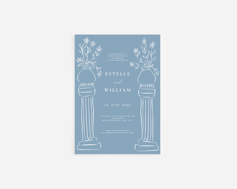 Blue Column Wedding Invitation Template – Classical Vase & Pedestal ...