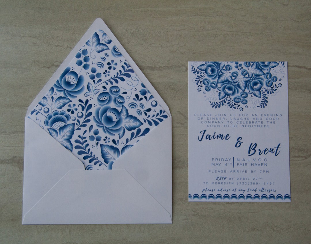 Blue Floral Porcelain Invitation Bridal Shower Invitation Rehearsal ...