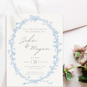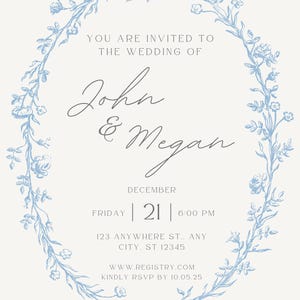 Dusty Blue Wedding Invitation Template, Boho Floral Wedding Invite ...