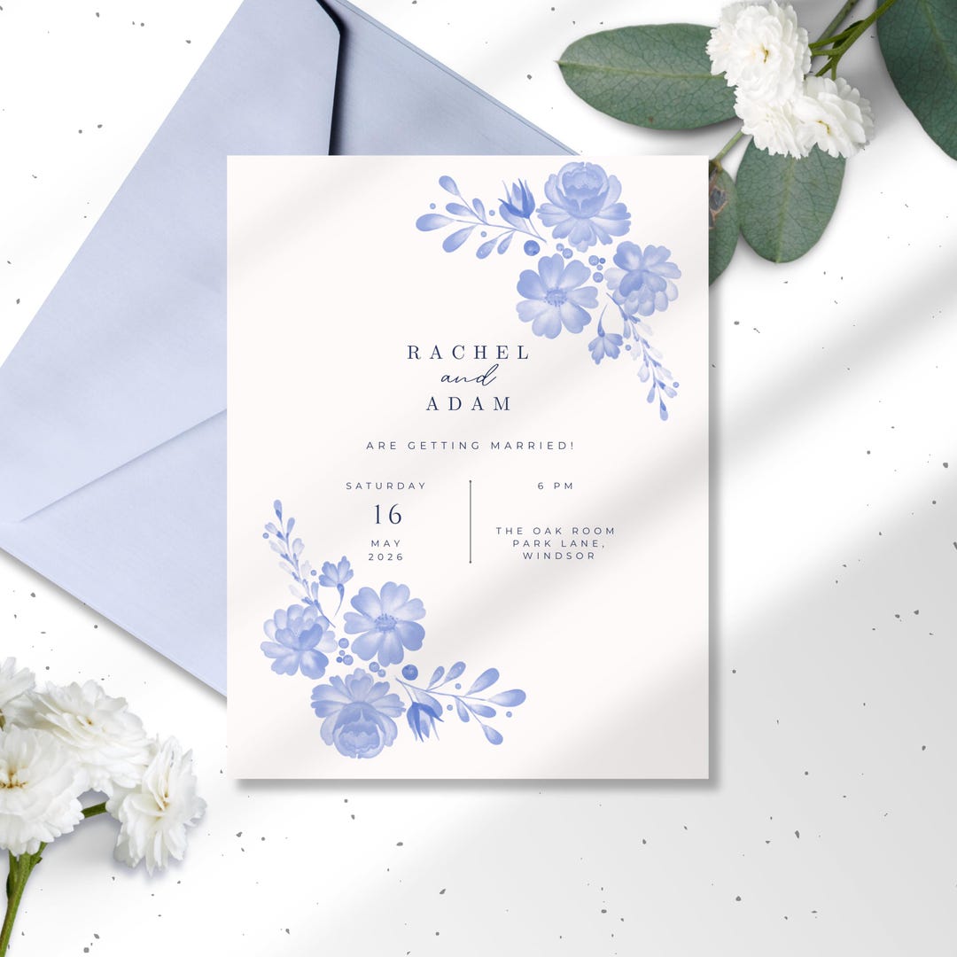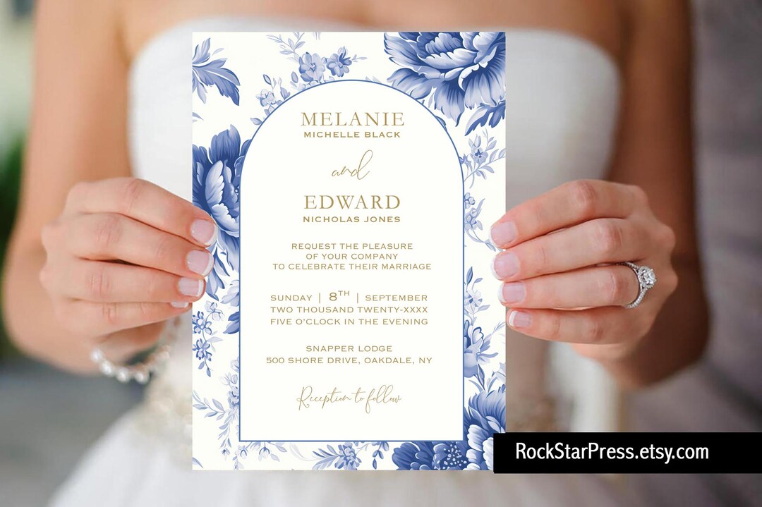 Porcelain Blue Floral Wedding Invitation – Make Me Digital: printable ...