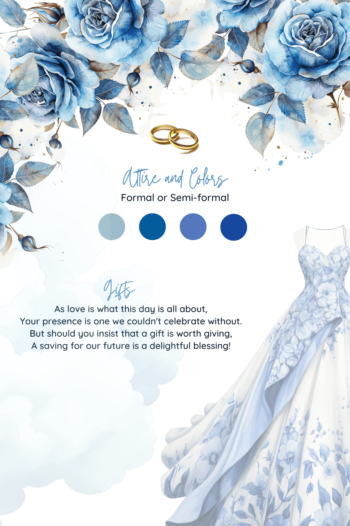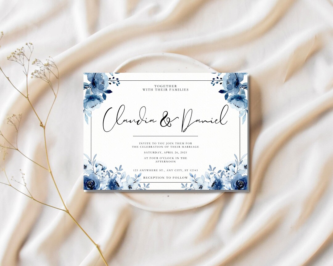 Elegant Blue Watercolor and Blue Floral Wedding Invitation