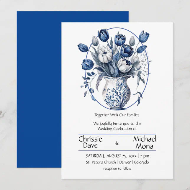 Elegant White & Blue Tulips in Vase Wedding Invitation | Zazzle