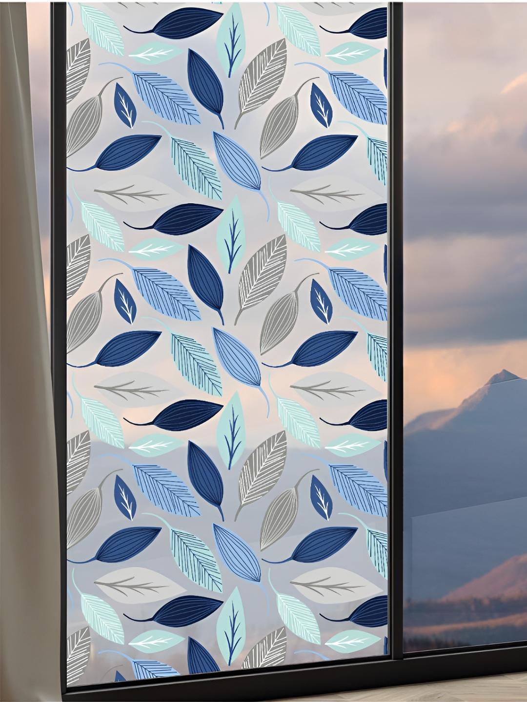 Buy HOME13 Blue Leaf Frosted Window Film Anti UV Privacy Self Adhesive ...