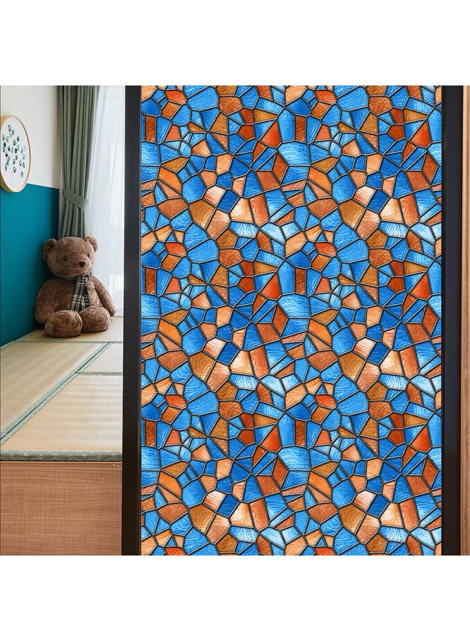Window Privacy Film Blue Geometric Stained Glass Window Film Decorative ...