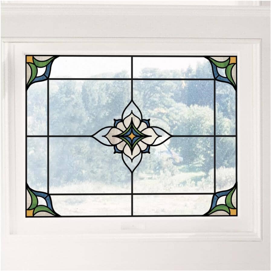 INHOME 9" x 7.7" Alden Blue Stained Glass Peel and Stick Window Decals ...