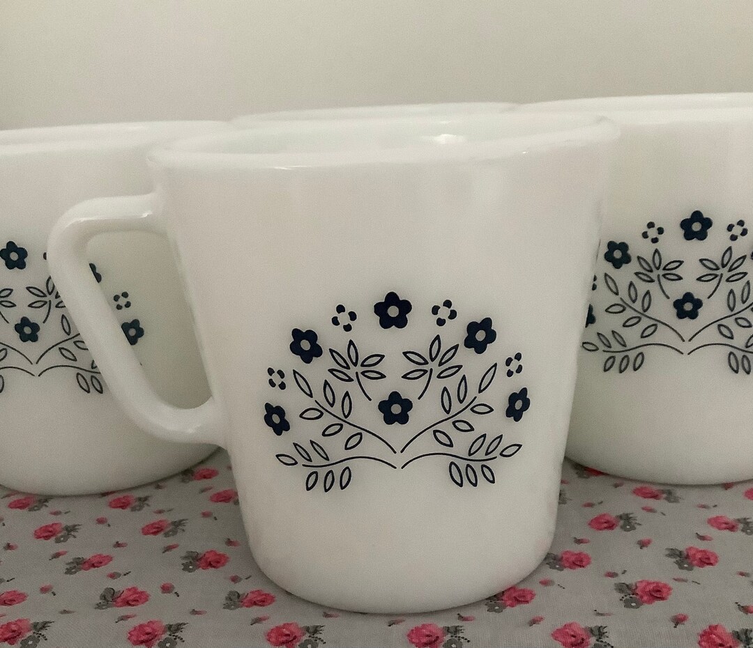 5 Pyrex Blueberry Mugs Blue Flower Coffee Cup D-Handle 1410 Summer ...