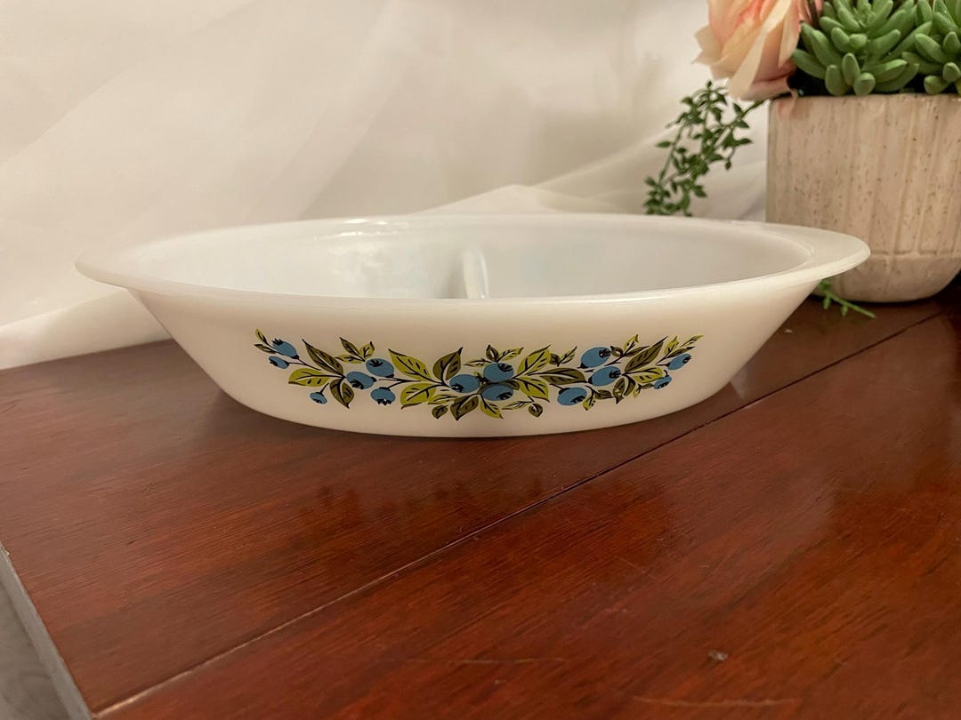 Vintage Glasbake Blueberry Milk Glass Divided Casserole Dish - Etsy