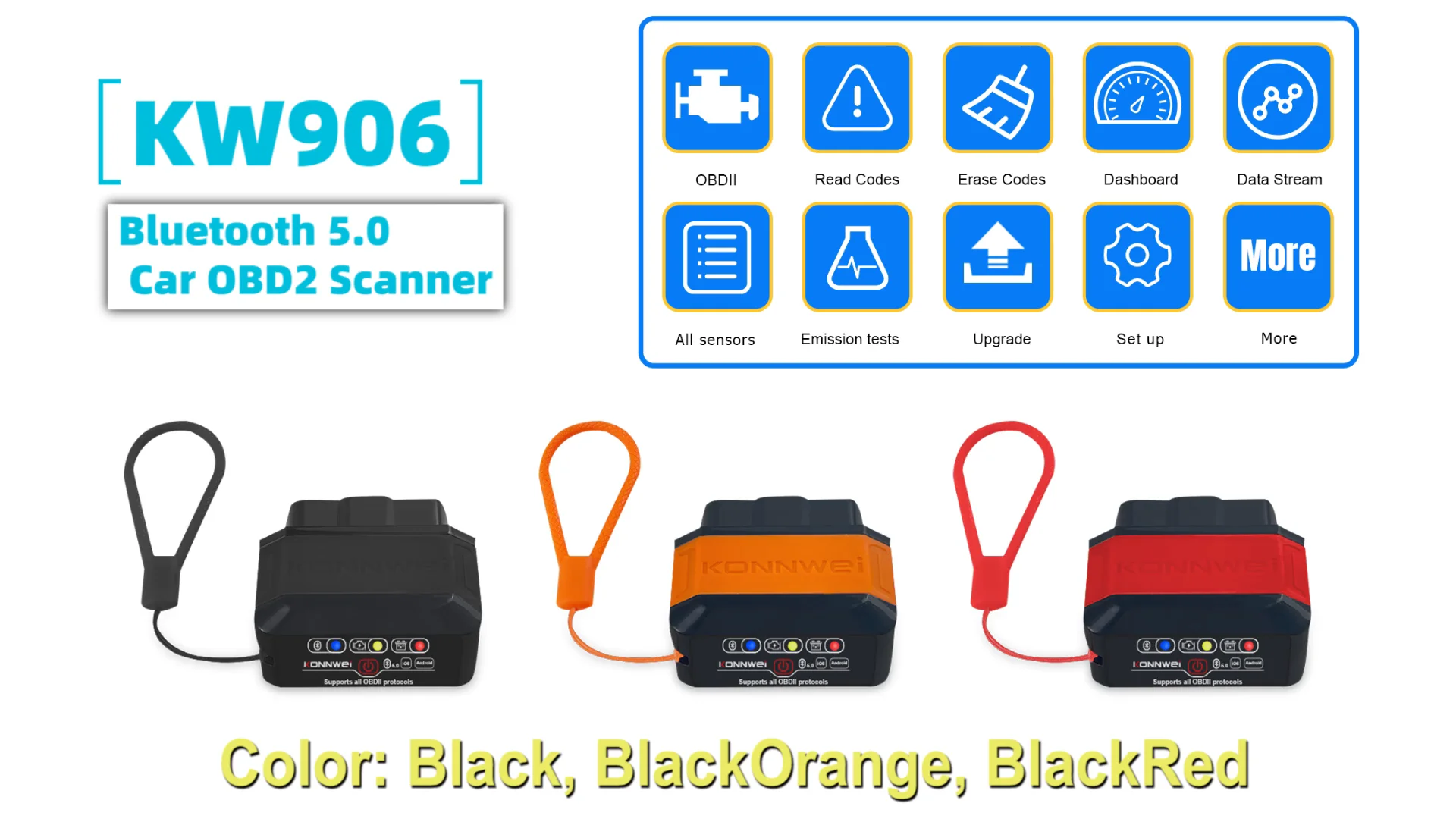 12v Protocol Vehicle Obd2 Engine Code Reader Konnwei Wireless Bluetooth ...