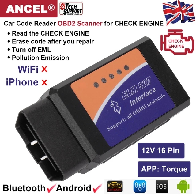 ANCEL ELM327 BLUETOOTH Car OBD2 Scanner Diagnostic Check Engine Code ...