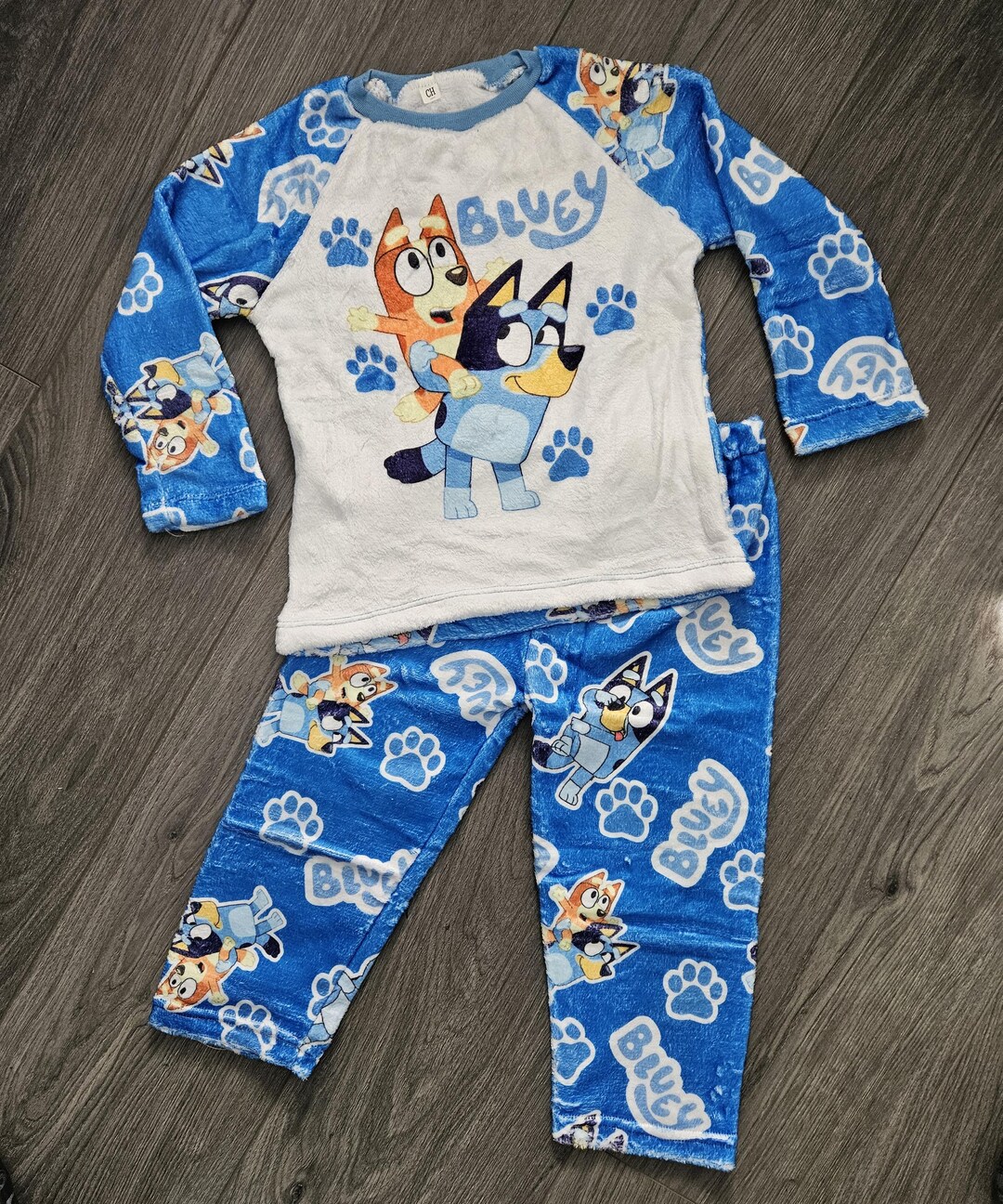 Bluey & Bingo Blue Fuzzy Warm Kids Toddlers Pajamas 2pc Pants Set Size ...
