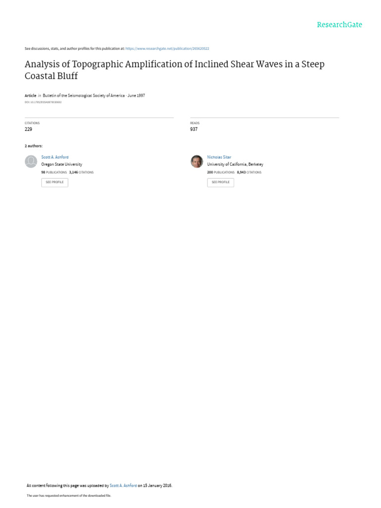 1997 - Analysis of Topographic Amplification of Inclined Shear Waves in ...