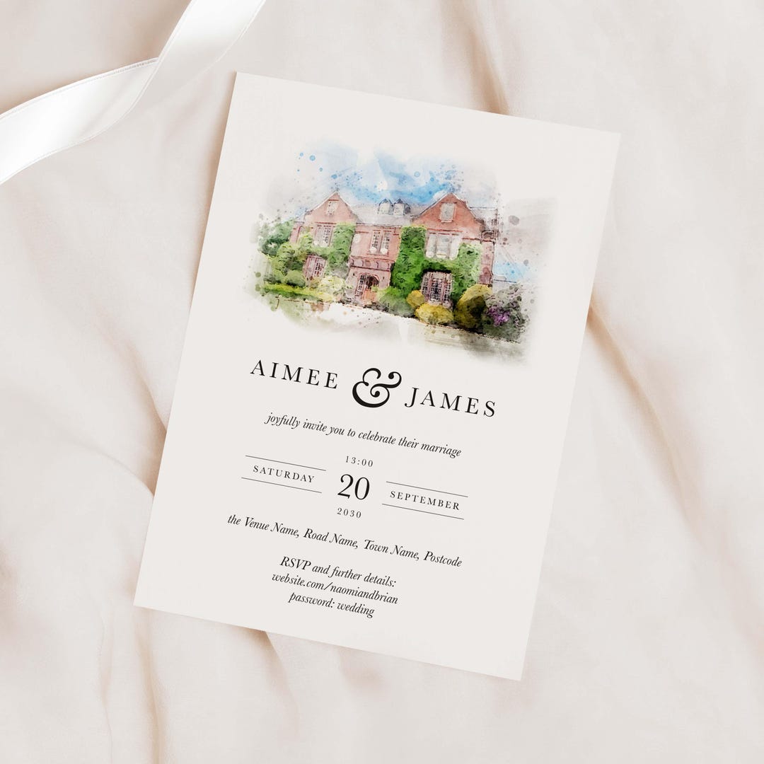 Watercolour Wedding Venue Invitation, Custom Illustrated Design ...