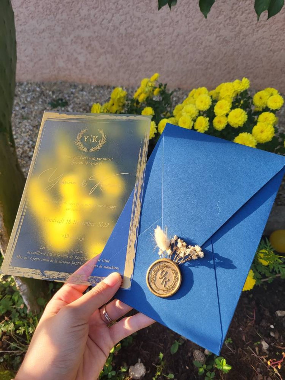Elegant invitation card mockup on a marble countertop with a blurred ...