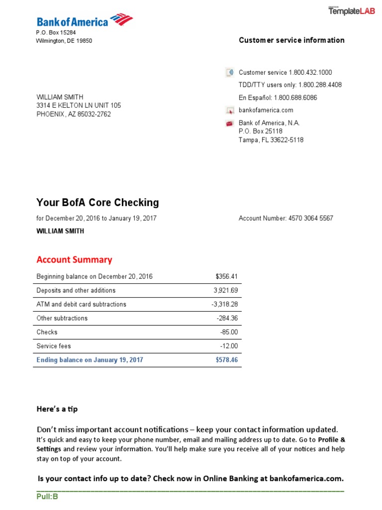 Bank Statement Bank of America Statement Free Download - EDIT SSC