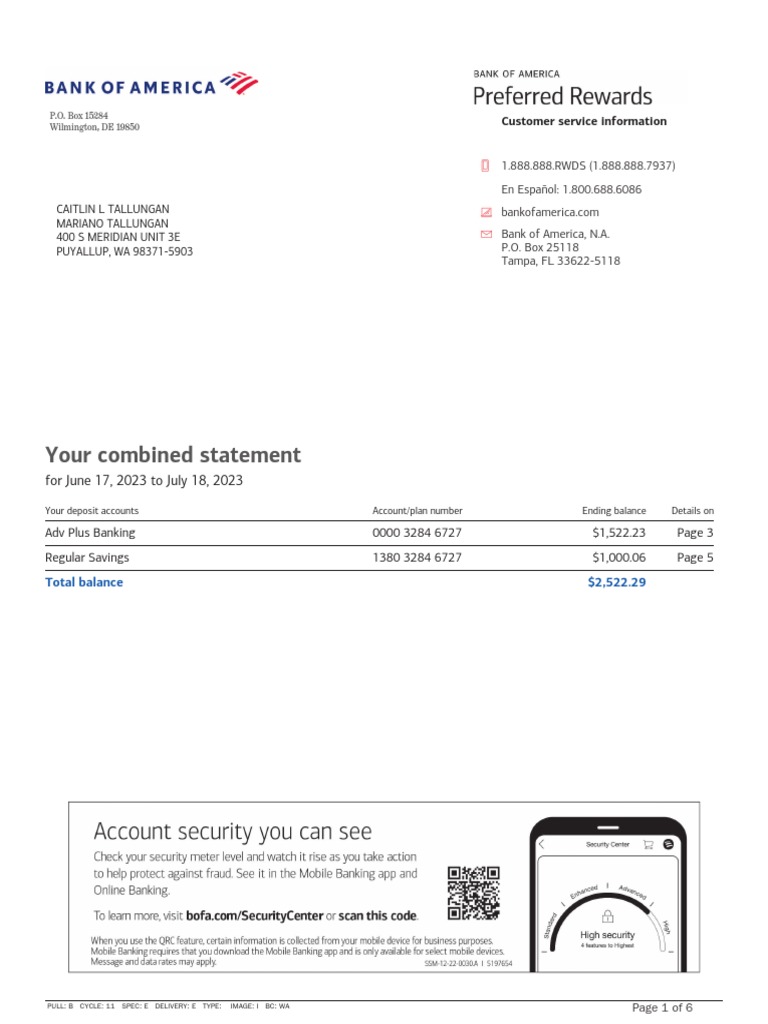 Samuel Dawson BoA Bank Statement.pdf - Bank Of America N. A. 101 South ...