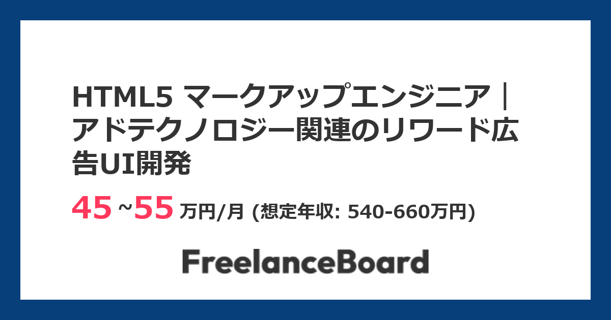 HTML5 マークアップエンジニア|アドテクノロジー関連のリワード広告UI開発のフリーランス案件・求人情報 - | フリーランスボード