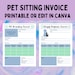 Printable Dog Sitting Invoice Editable Template - Etsy