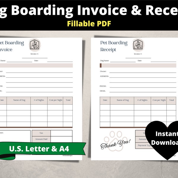 Dog Boarding Invoice, Dog Boarding Receipt Editable PDF D001 - Etsy