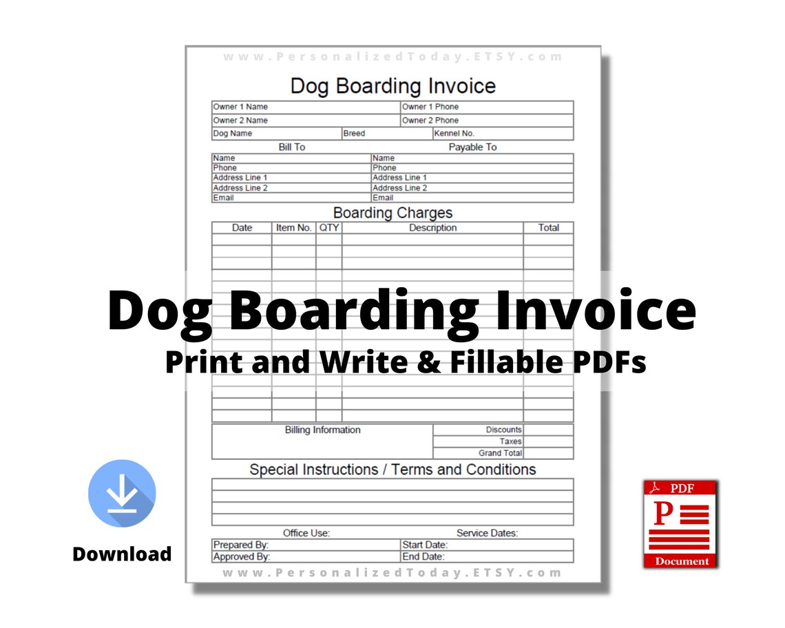 Dog Boarding Invoice Print and Write and Fillable PDF Digital - Etsy